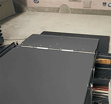 The automatic inboard roll stop serves as a bridge from the platform to the vehicle floor. As a safety feature, platform operation is prevented if the inboard roll stop is occupied.
