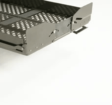 For your safety, the electric roll stop raises to the vertical position before the mobility lift platform leaves the ground. Special sensors prevent the platform from raising if the roll stop is not fully engaged.